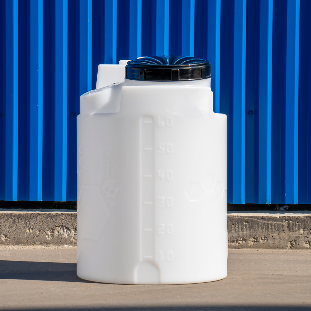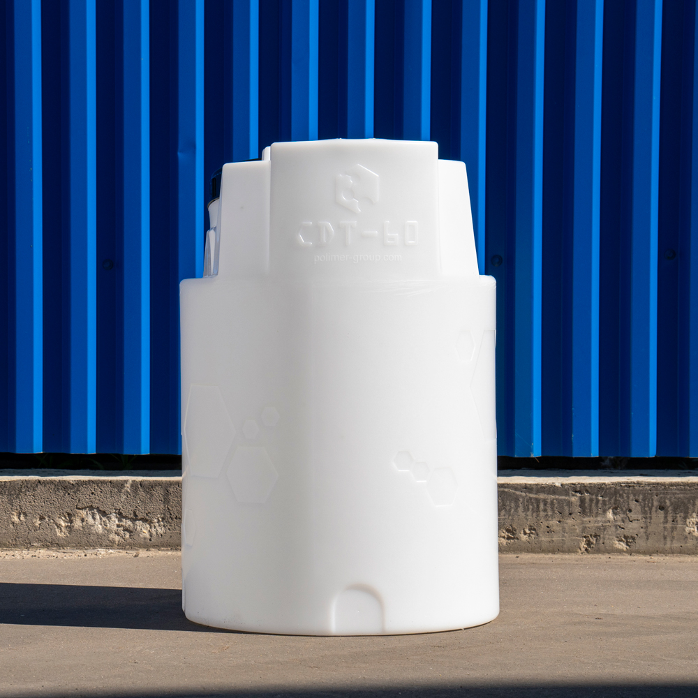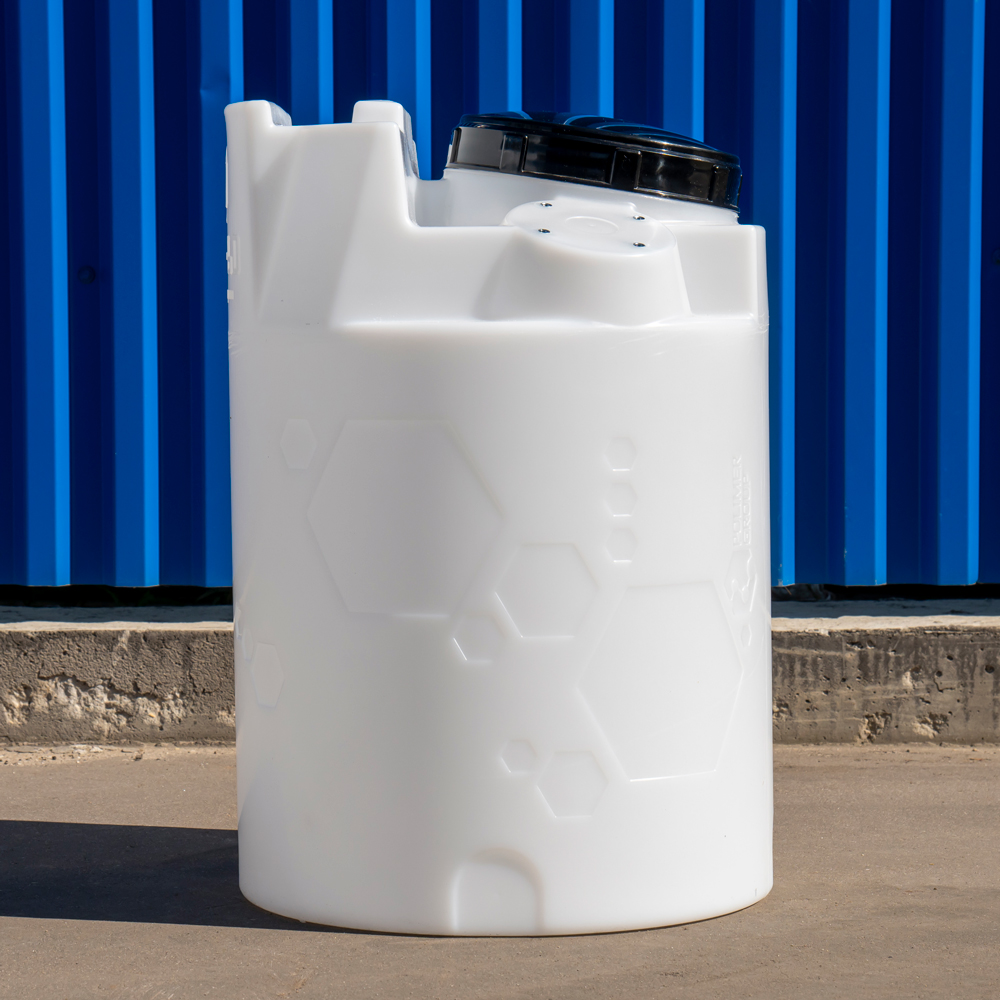 - Бесшовный корпус из первичного пищевого полиэтилена LLDPE — прочный, устойчивый к ударным нагрузкам и химически агрессивным средам.