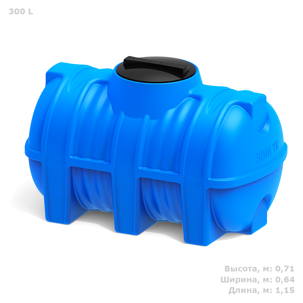 Горизонтальная цилиндрическая емкость G 300 предназначена для хранения питьевой и технической воды, дизельного топлива.