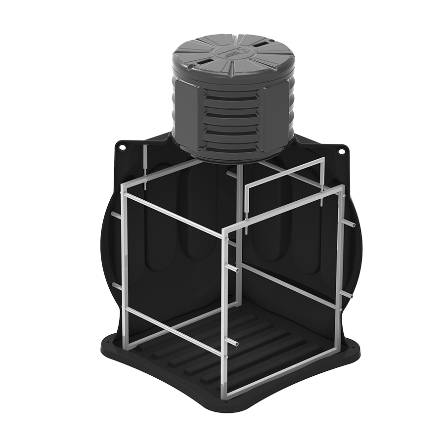 На колодце имеются площадки для ввода/вывода полиэтиленовых труб с различных направлений. Герметичность соединения труб с корпусом колодца осуществляется при помощи адаптеров герметичного ввода. Крышка кабельного колодца имеет резьбовое соединение с корпусом колодца.