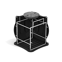 На колодце имеются площадки для ввода/вывода полиэтиленовых труб с различных направлений. Герметичность соединения труб с корпусом колодца осуществляется при помощи адаптеров герметичного ввода. Крышка кабельного колодца имеет резьбовое соединение с корпусом колодца.