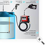 - В стандартном исполнении МИНИ АЗС от Полимер-Групп комплектуется полиэтиленовой емкостью необходимого объема, крепежным кронштейном, заправочным блоком, раздаточным шлангом, автоматическим пистолетом с отсекателем, заборным шлангом, донным фильтром грубой очистки, соединительными фитингами.